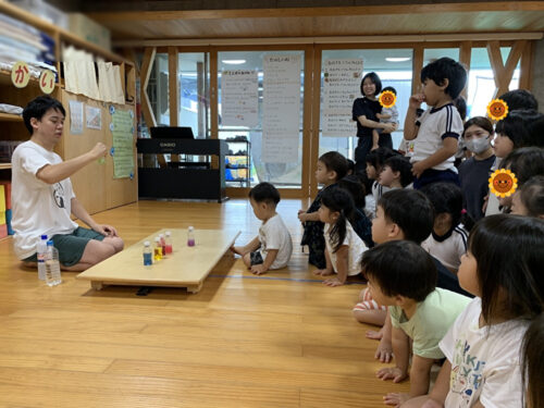 本日は9月生まれのお友だちの誕生会を行いました。 先生からのプレゼントは、お誕生日の「ごちそう作り」。 材料は、食紅・洗濯のり・小麦粉・ビーズ…誕生児さんと先生が力を合わせてかわいいジュースとケーキを作ってみんなで楽しいひとときを過ごしました。
