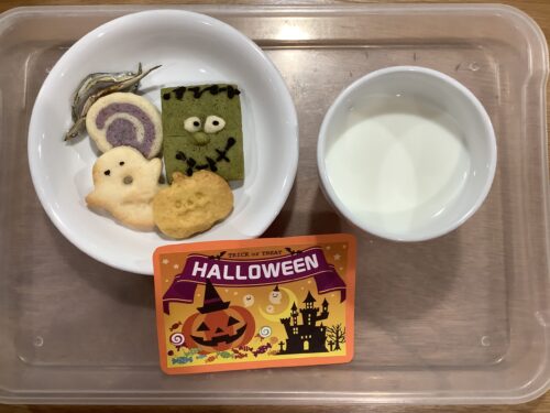 本日は10月生まれの誕生会を行いました。 先生のアイデアで、みんなでハロウィンの仮装をしてお祝いしました。 色とりどりの衣装に笑顔があふれ、特別な一日になりました。 ハロウィンの絵本やお話も楽しみながら、秋ならではの楽しい時間を過ごしました。 おやつには、かわいいハロウィンクッキーも登場し、子どもたちは大喜びでした。