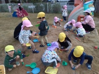 大きなすべり台や砂場で思い切り遊び、お友だちとも一緒に楽しむ姿が見られました。