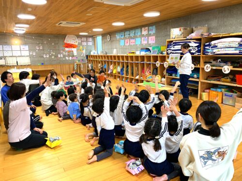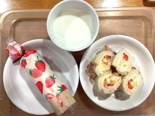 一年の健康と幸せを願い、節分会を行いました。 子どもたちは「おこりんぼ鬼」「なきむし鬼」「なまけもの鬼」など、自分のお腹の中にいる鬼を思い浮かべながら、「鬼は外!福は内!」と元気いっぱい豆まきをしました。 ☆恵方巻ロール