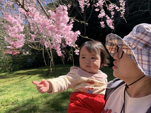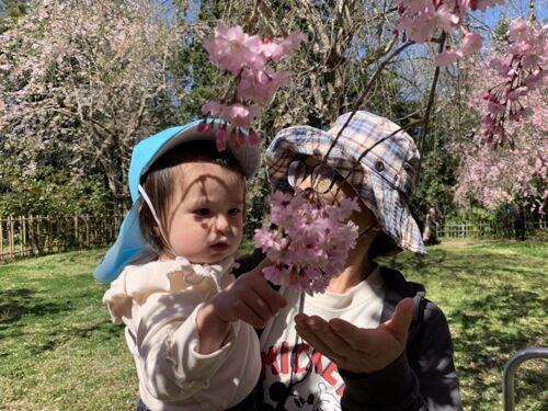 きれいな桜を見ながらお花見を楽しみました。春の自然を感じるひととき、にこにこの子どもたちでした。