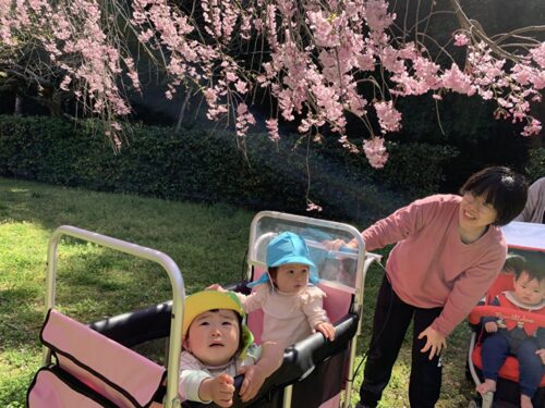 春爛漫の中、ひよこ組・りす組でお散歩に出かけました。